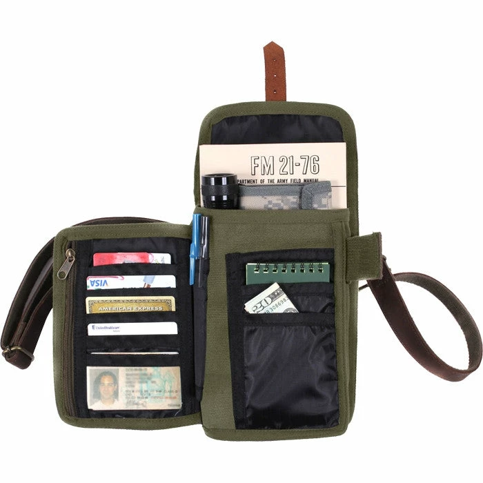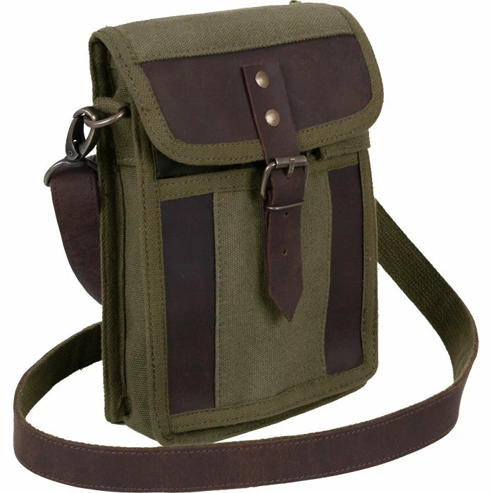 Army Navy Store Bags Olive Drab – Tactical Canvas Travel Portfolio Shoulder Bag With Leather Accents