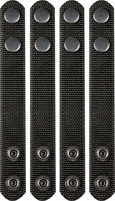 Made of 1680 denier polyester. 4 per card. Snap closure.