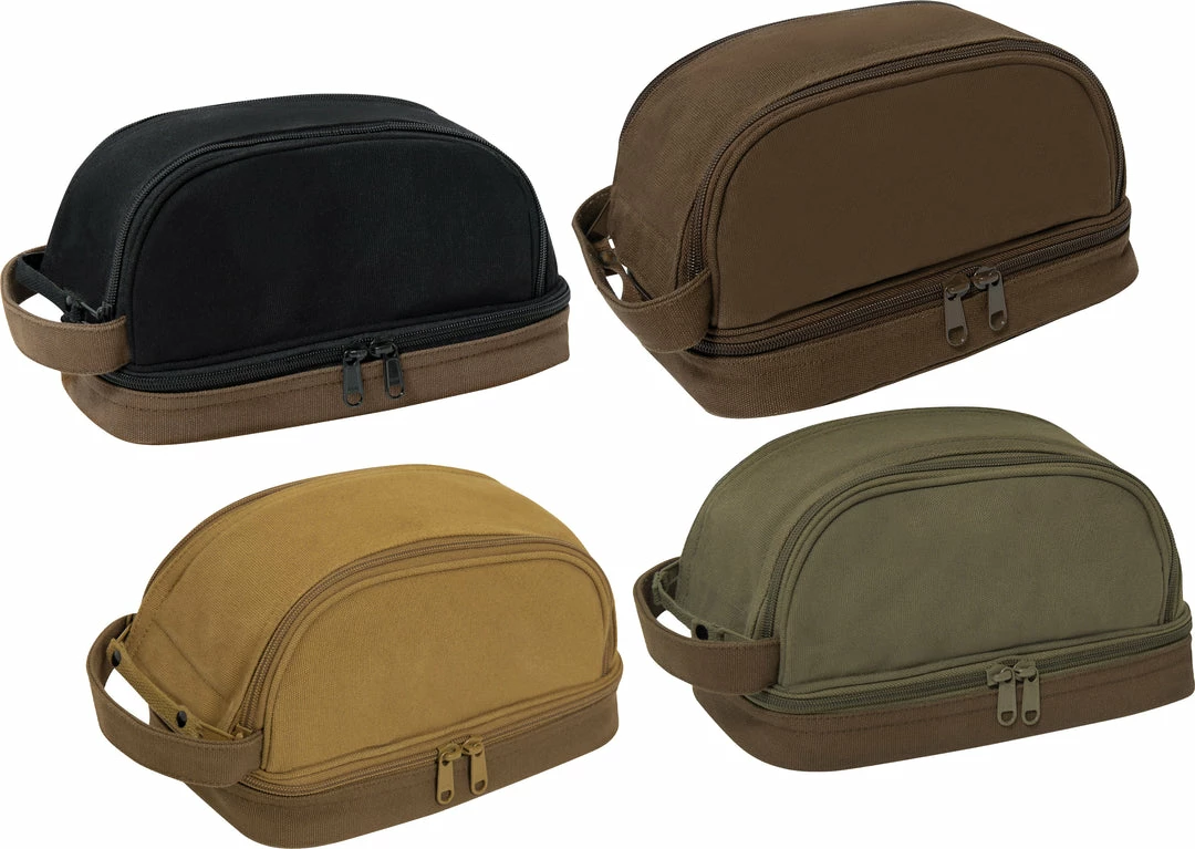 Army Navy Store Camping / Survival Gear Deluxe Canvas Travel Kit Two Tone Dopp Toiletry Bag With Carry Handle