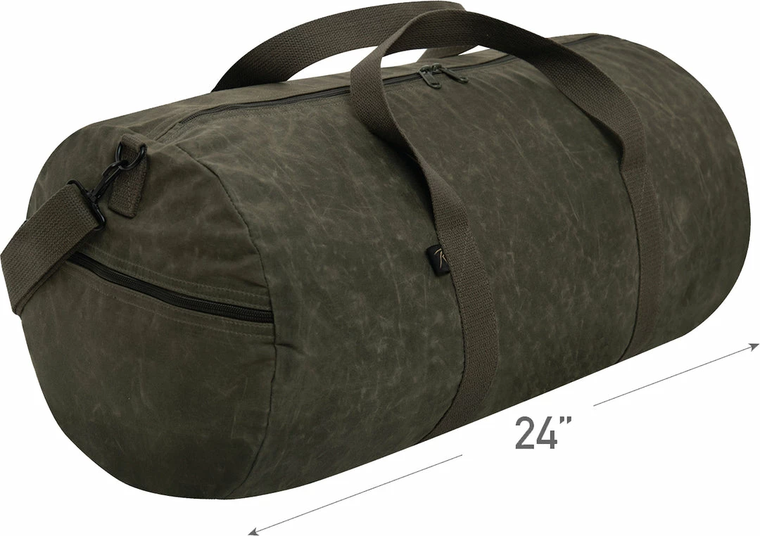 Army Navy Store Camping / Survival Gear Olive Drab – Waxed Canvas Shoulder Duffle Bag – 24 Inch