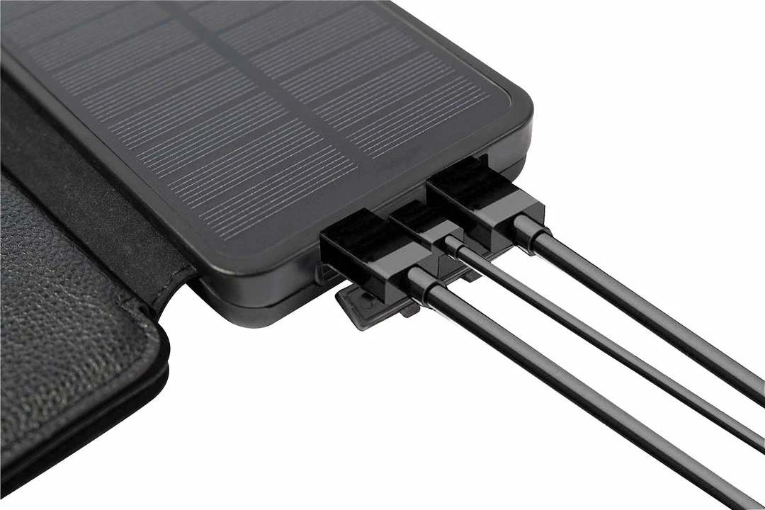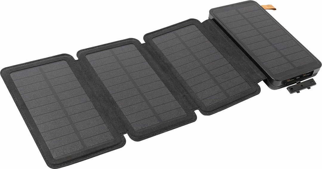 - Easy-to-pack foldable portable charger with four solar panels for capturing maximum energy from the sun