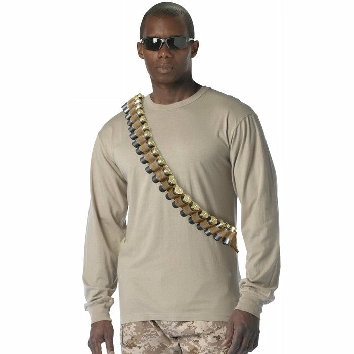 Ideally worn by military personnel, law enforcement, public safety and sportsman. Have easy and fast access to your shotgun shells when needed. Coyote tan shotgun shell bandolier.