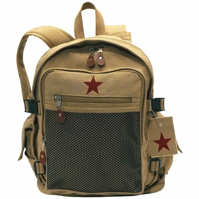 Army Navy Store Khaki – Military Vintage Deluxe Backpack With Red China Star Emblem Bags