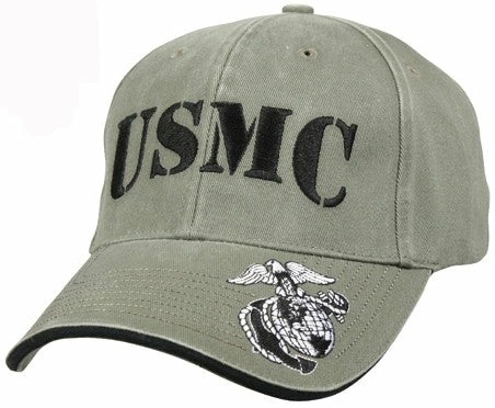 Comfortable 100% brushed cotton twill. Olive drab cap with embroidered USMC on front panel (Black stitching). On the bill is Olive Drab color top stitched with embroidery Globe & Anchor. Logo embroidered on brim (Black & White stitching). Black sandwich brim. Adjustable hook & loop closure. Vintage olive drab color. Officially Licensed by the Marines.