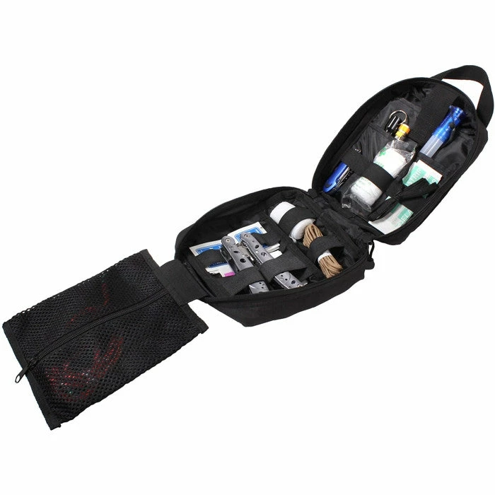 Tactical Breakaway Pouch features a tri-fold out design that is MOLLE compatible. Main pouch tears away from the platform, the platform has 2 D-Rigns and cinch straps with quick release buckle. The tactical pouch is ideal for carrying emergency supplies.