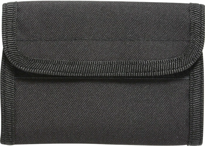 The deluxe tri fold ID wallet is an essential item for organization. Store all your money, ID’s, credit cards, debits cards, business cards and much more in the deluxe tri-fold wallet. Black military style tactical deluxe tri fold ID wallet.