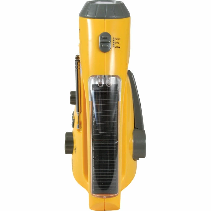 Always be connected. Charge in sunlight in 11 to 13 hours. Solar panels charges in direct sunlight in only 4 to 5 hours. Rechargeable lithium battery charges in 2 hours when connected to a computer. Includes 1 USB and 1 discharging cable, 6 interchangeable connectors. Blister carded. This solar powered radio & flashlight combo is an essential item for any outdoorsmen. This item is quipped with a “Blink/Siren” feature which will alert anyone you are in danger. When you are stuck in the wilderness without any batteries, you can count on the solar powered radio and flashlight to provide you with light, charged by solar energy or by cranking.