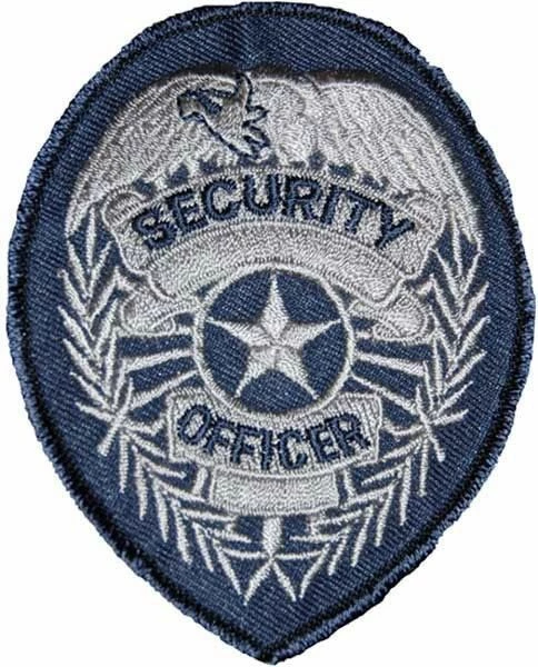 - Displays “Security Officer” in embroidered text with a star on a blue backdrop