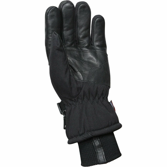 Outer shell is made of high denier nylon. Palm, finger fronts and index finger have tough leather for rough use and to provide protection. Lined with breathable waterproofing and Thermoblock insulation to protect against cold and wet weather conditions. Soft polyester tricot lining wicks perspiration from the hand for added comfort. Black cold weather military gloves.