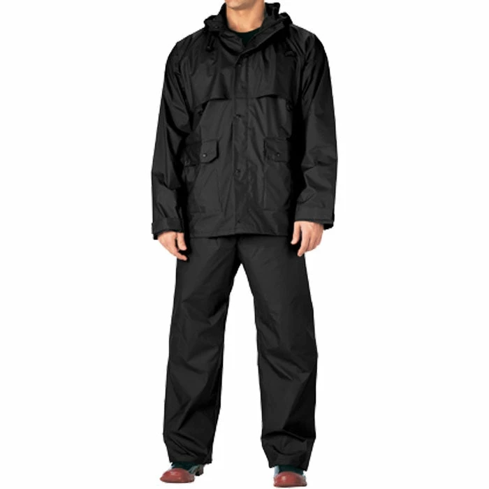Rothco Black – Heavy Duty 2-Piece PVC Pants & Coat Rainsuit Jackets / Coats
