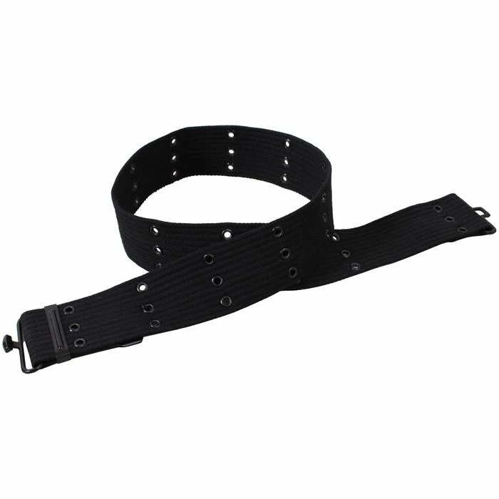 100% cotton canvas material. Adjustable belt. Metal buckle. 42″ (inches) in length. 2.25″ (inches) wide. Army style pistol belt. Grometted with eyelets to mount old style belt. Individually polyester bagged. Very stylish and comfortable. Works great. Unisex. Fits BDU pants and many others. With iron fitting and buckle. Army style. GI Government Issued style. Black canvas pistol belt with metal buckle. Dimensions: 42″ x 2.25″ (l x w) (inches).