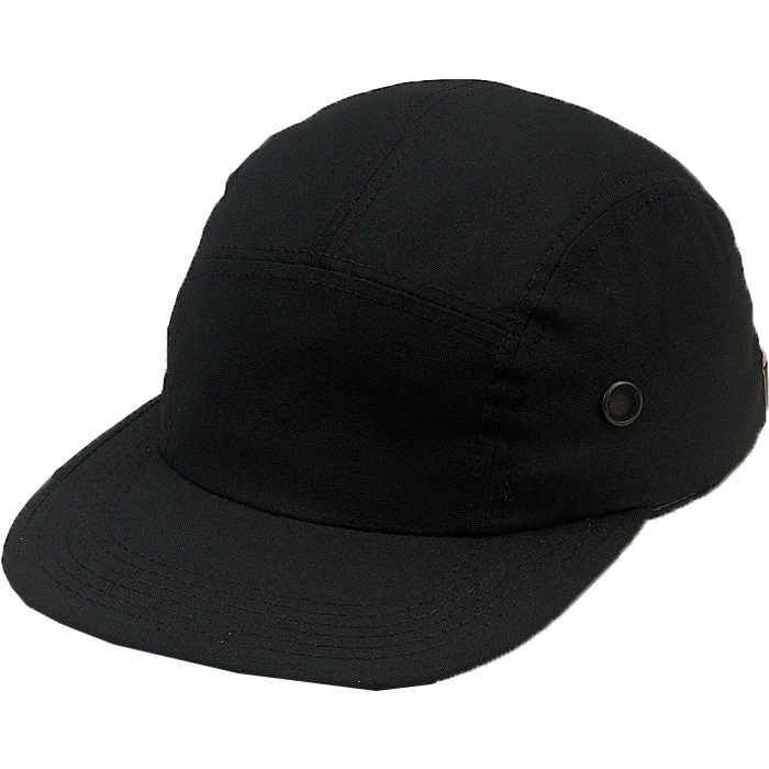 Polyester/Cotton material. 5 panel construction. Side vents. Adjustable leather strap. Once size fits most. Unisex. Also known as engineer cap. Black street cap.