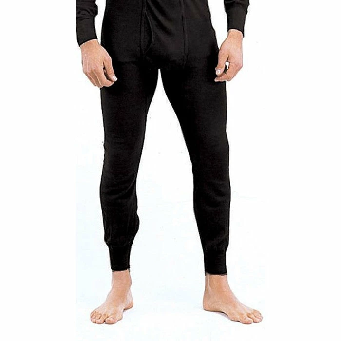 Lightweight 100% polyester material. 1×1 soft rib knit fabric. Cold weather comfort. Wicks moisture away from your body to keep you dry and warm. Can be worn alone or as a base layer for extra warmth. Odor and mildew resistant. Shrink resistant. Clothing has the lowest thermal conductivity (the rate at which heat flows through a material) of any traditional material. Black single layer bottoms. Black – performance thermal underwear bottoms.