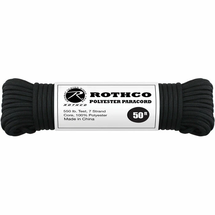Rothco Black – Polyester 550 LB Tested 100 Feet Paracord Rope