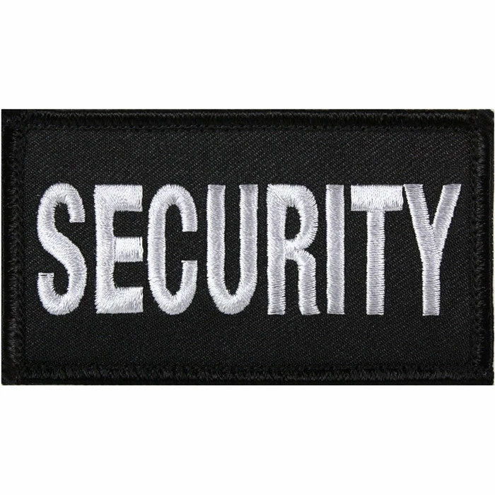 Black patch with security in silver color. Hook backing. Dimensions: 1.875″ x 3.375″.