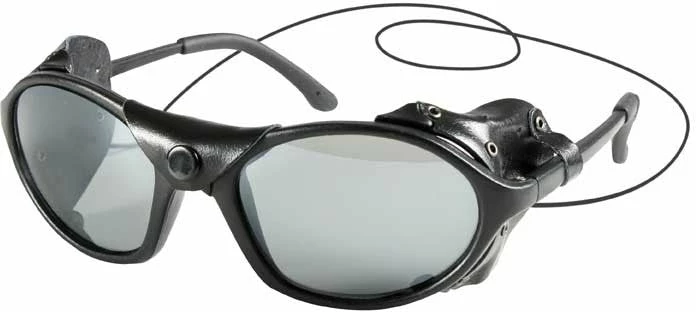 Smoke polycarbonate lenses. Side wind guards. Black temple – polycabonate. Plastic. Contains black lens – UV400 protection – ” CE ”. Anti-fog and anti-scratch coating. Contains black elastic neck lanyard.