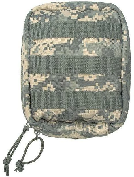Constructed of 900 Denier polyester. Heavyweight zippered pouch. MOLLE attachment points. 1 main compartment with inside pouch pocket. Inside elastic bands. Double zipper pulls. Grommet hole for drainage. ACU Digital Camo – Pouch for first aid kit. Dimensions: 7″ x 8″ x 3″ (inches).