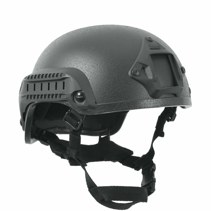 The base jump airsoft helmet is a replica military helmet made to be used for airsoft and paintball. The helmet includes front and side mounts to attach night vision goggles and other gear while playing. Black tactical military replica base jump helmet.
