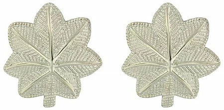 Insignia has a pin closure. Made in USA. This item is manufactured by a U.S. factory certified by The Institute of Heraldry. Nickel plated. MIL DTL-14639_32. Includes two insignias. Can be pinned on shirts, pants, shoes, coats, sweaters, bags, etc. Silver colored. Officer’s insignia. Polished lieutenant colonel officer insignia set.