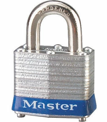 40mm wide laminated steel body . Hardened steel shackle. Rustproofing. Double locking levers for superior pry resistance. Highly popular 4-pin tumbler tumbler mechanism for additional resistance to picking. 9/32″ (inches) (7mm) hardened steel shackle for exceptional cut resistance. Includes 2 keys. 1 pad lock. Suggested uses: sheds, cabinets, gates and much more. Master lock: Cylinder tumbler padlock 3D. Silver colored lock. Master Lock Brand.