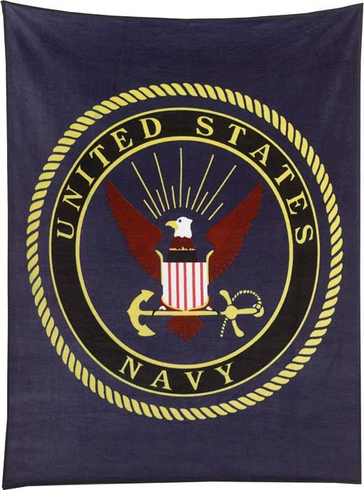 - Navy Blue US Navy military insignia fleece blanket.