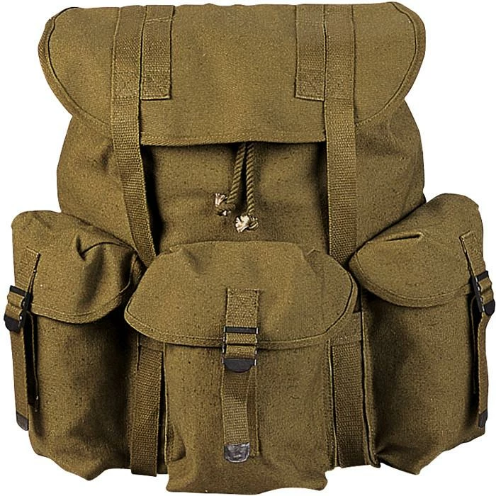 HW heavy weight canvas soft pack material. Large outside pockets. Drawstring top with overflap. Adjustable shoulder straps. The mini ALICE pack is a great alternative to the original ALICE if you are looking for a short getaway, or just need to pack less. Lightweight and comfortable. A favorite of military personnel, campers, bicyclist, hikers, fisherman, outdoors men, and much much more. GI Government Issued style. Olive Drab GI type heavyweight canvas mini ALICE pack. Dimensions 13″ x 16″ x 7″ (inches).