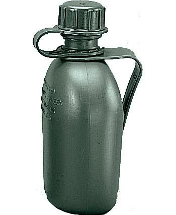 Our canteens are designed to be used by hikers, campers, soldiers and workers in the field. Official Government issued canteen. Made In USA. Holds 1 quart of any type of liquid. Cap is secured to canteen. Fits into GI style canteen covers. Plastic canteens are typically as light or lighter than their metal equivalents and are quite resistant to developing leaks, even when dropped or severely bumped. Printed on front: For water only do not apply canteen to open flame or burner plates. BPA free. Contains 3 pieces, cap for canteen, belt clip, and canteen. Olive Drab genuine GI 3 piece 1 quart canteen with clip. This product is GSA Compliant.
