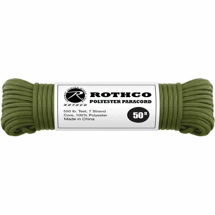 Rothco Olive Drab – Polyester 550 LB Tested 50 Feet Paracord Rope Paracord / Rope / Rappelling Gear