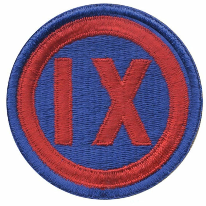 Iron on/sew on military embroidered patch. IX printed on the patch in red on a blue background engulfed in a red circle. Patch includes the following colors red and blue. Replica military patch. The IX Corps was a corps of the United States Army which served in World War II and throughout the Cold War. In time throughout its history it has been known as IX Army Corps, and is the foundation for both the U.S. 9th Theater Support Command at Camp Zama, Japan, and the 9th Mission Support Command at Fort Shafter, Hawaii, of the U.S. Army Reserve. US Army patch. Size: 2.875 round.