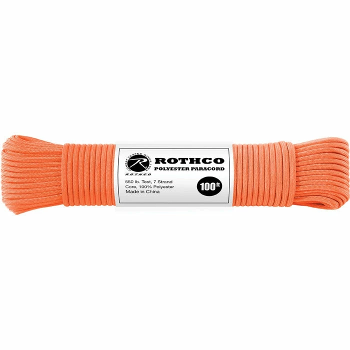 Rothco Safety Orange – Polyester 550 LB Tested 100 Feet Paracord Rope Paracord / Rope / Rappelling Gear