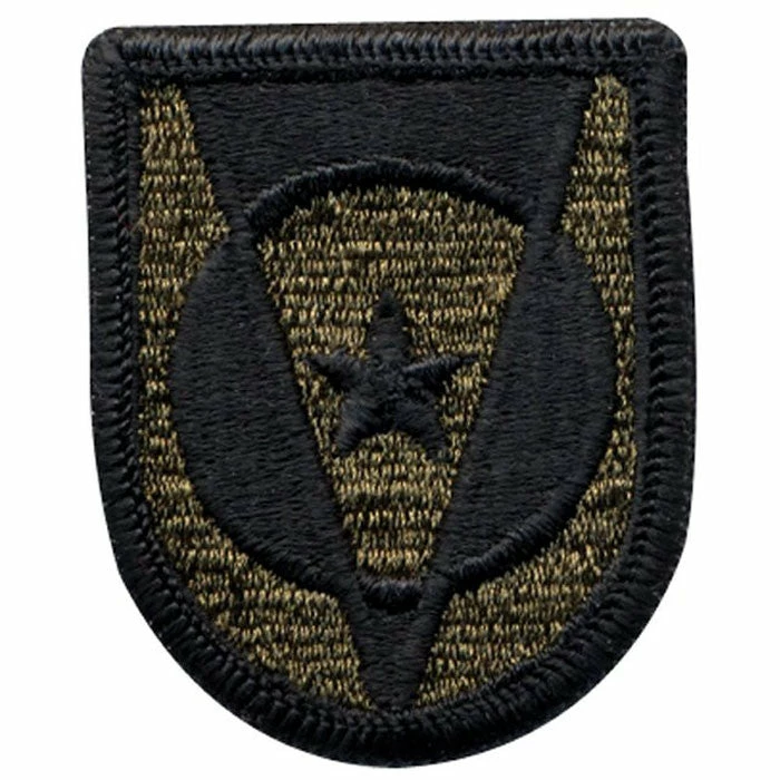 Iron on/sew on military embroidered patch. US Army 5th transportation emblem pictured on the patch in black and subdued coloring. Replica military patch. The 5th transportation command ran the Qui Nhon port and was later deployed to Da Nang with battalions at Vung Tau and Cat Lai. Among its duties were support of amphibious operation and supplying ammunition and ordnance to operational units, primarily by heavy boat. The wedge or V-shape indicates the numerical designation of the Command. The disc represents the wheel, a symbol basic to transportation and the star at its hub represents the command function.