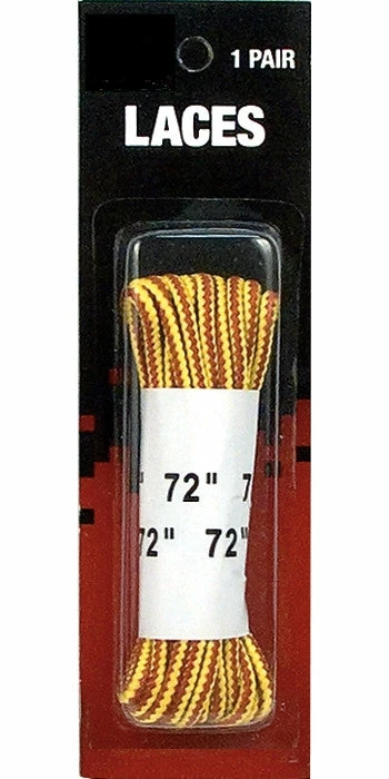 Nylon material. Heat formed tips. 1 – 72″” (inches) laces pack. Brown and yellow boot laces. Made in USA. Tan nylon 72″ work boot laces.