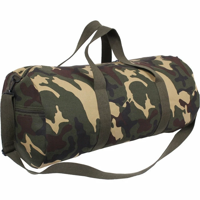 The heavy duty large shoulder bag is used to carry gear, clothing, uniforms and travel accessories. This pack is ideal to fit all your gear for a single day mission or to serve you as an overnight pack. Woodland Camouflage military heavyduty shoulder duffle bag.